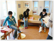 食事、お散歩、トイレなど生活する中で、しつけはとても重要になります。当院では、プロのインストラクターの方に来ていただきしつけ方指導を行っています。基本は飼い主さんの、ワンちゃんに対する接し方の指導を行います。しつけ方教室を通して、これからの生活の中で、少しずつ改善していくための方法を学びます。一度ではなかなか直らないワンちゃんの悪いクセも、根気良くしつけ方を実践していくことが大切です。「ほめてしつける」トレーニング方法で、ワンちゃんも飼い主さんも楽しみながら、トレーニングしましょう。